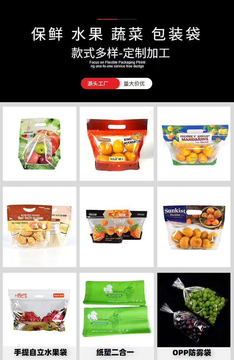 水果包裝除了防止污染和破壞外,還具有增加市場銷量的作用。使水果更符合需要,便于銷售。一些精美的包裝還可以增加水果在市場上的銷售價值,也能提升品牌效應,特別是一些做連鎖店鋪的老板,一款精美的水果包裝袋可以給客戶帶來很好的消費體驗,提升水果檔次從一款漂亮好看的水果袋做起。