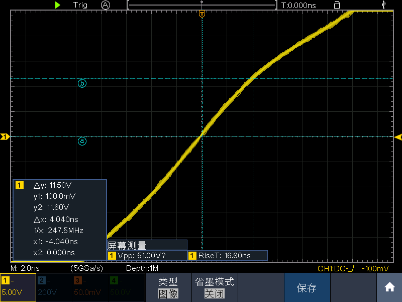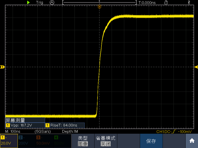 例如在下面168Vpp的方波截取中間一段,測得11.5/4.04ns≈2.8kV/us。